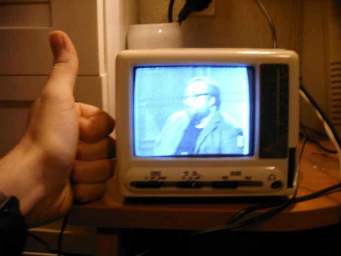 - Televisor de 5" blanco&negro. Le he tenido que colocar el conector de corriente fuera de la placa porque se me des-soldaba constantemente: